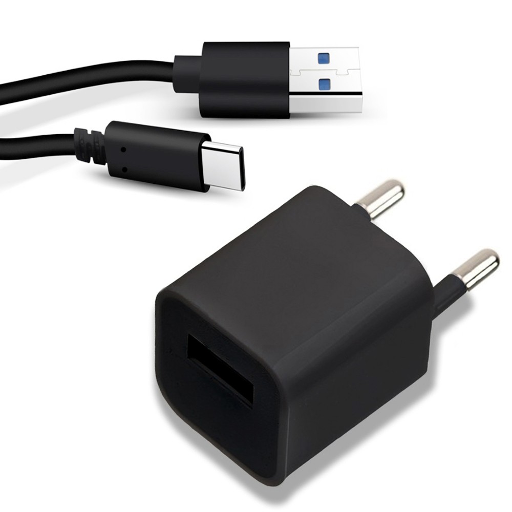 Комплект зарядное устройство и кабель 1метр type C (black). Адаптер мощностью 1А с разъемом USB для зарядки любых телефонов и кабель зарядки, передачи данных