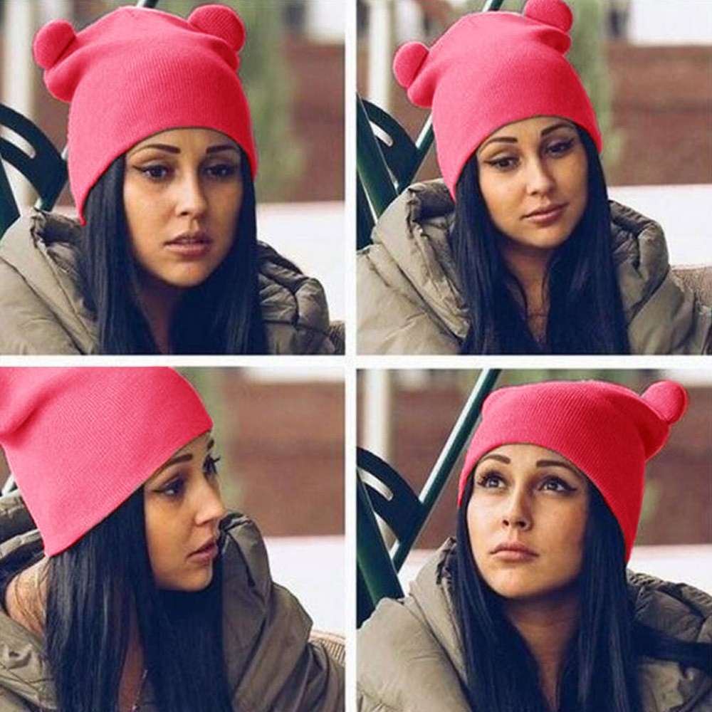Женская вязанная шапка с ушками (Красный)