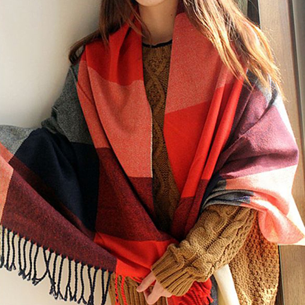 Шарф палантин в клетку - красный